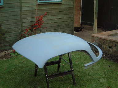 I now have the hardtop back and am doing the final prep work and paint. Here it is after the first coat of primer |